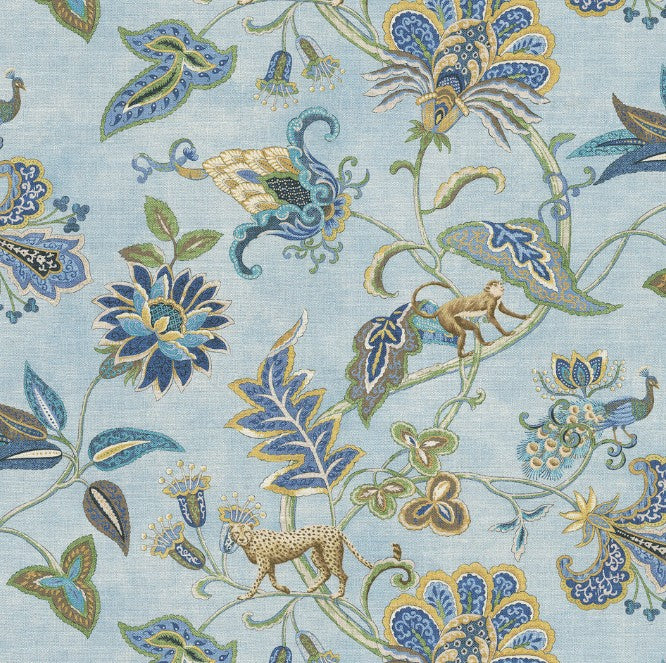 The pastel blues and natural colour tones of the Adventurer Caribe are the perfect combination to make this fabric a standout for any collection. Plus the beautiful details of the monkey and cheetah.