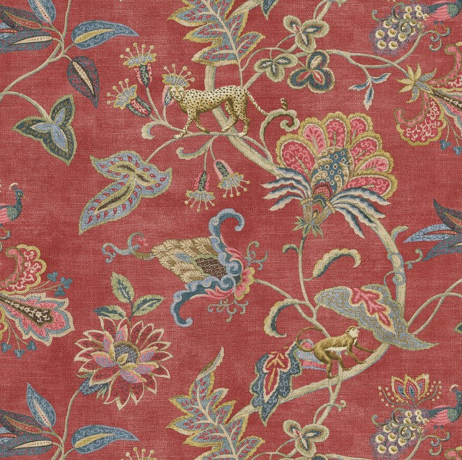 The Pomegranate Red of the Adventurer is the perfect earthy colour tones for your home. Add in the beautiful details of the monkey and cheetah and you have a standout fabric.