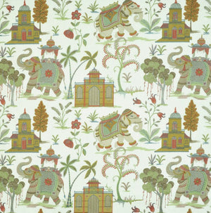 Every detail of this design is embroidered to perfection with the natural tones of the elephant and the pistachio green foliage makes this fabric a standout.