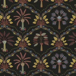 This Striking Palm leaf on a black background fabric is made from 100% Cotton.